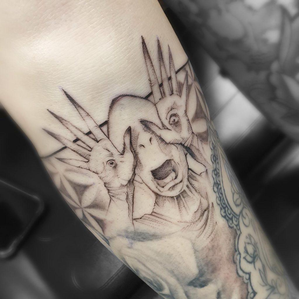 Bei mir bist du richtig, wenn du illustrative Tattoos magst, egal ob bunt oder black & grey. Comic, Anime oder klassische Illustrationen: Mein Herz blüht für alles. Darüber hinaus findest du mich beim Semirealismus, bevorzugt Portraitarbeiten, oder Fineline und Peppershadingarbeiten.